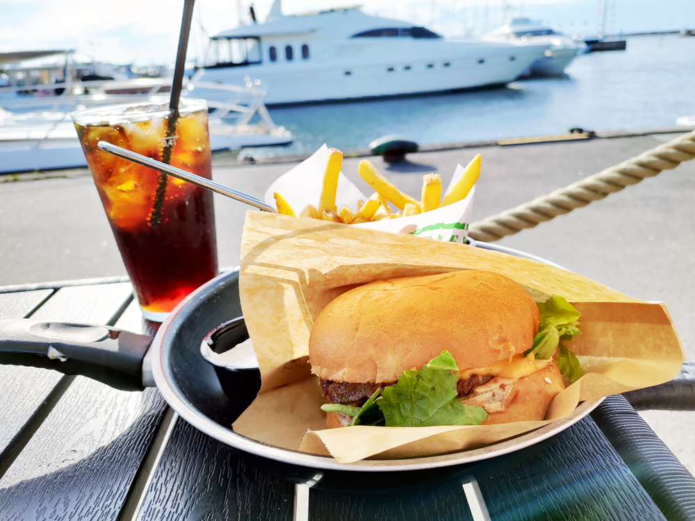 Burgare mitt i hamnen på Ebbas by the Sea i Borgholm